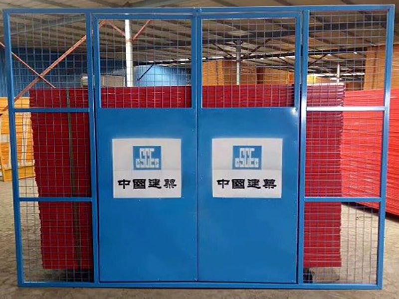2.門面優點:門面采用小孔鋼板網或電焊網片與鋼板組合構成。一方面可以防止等候人員伸手開門,又便于人貨電梯操作人員觀察樓內情況,利于樓內外雙方工作人員溝通交流。高強冷軋鋼板同時也是小型汽車普遍采用的材料,可以抗擊300kg以上的沖擊力。并且噴涂警示語和擋腳警示線,對工地文明施工形象顯著提升。